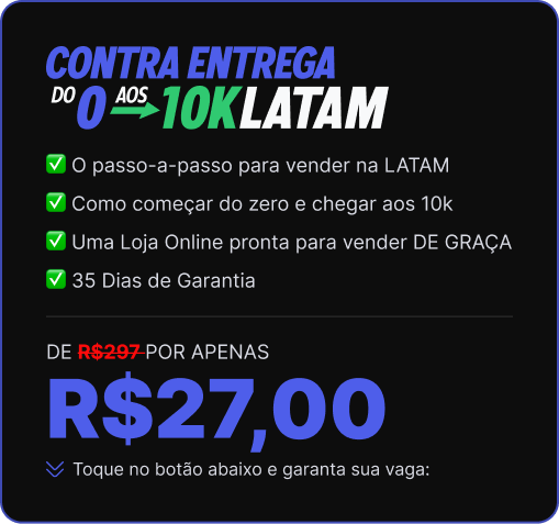 No “Contra Entrega dos 0 aos 10k” você tem 35 dias para testar e avaliar nosso método com a loja que te daremos de presente.