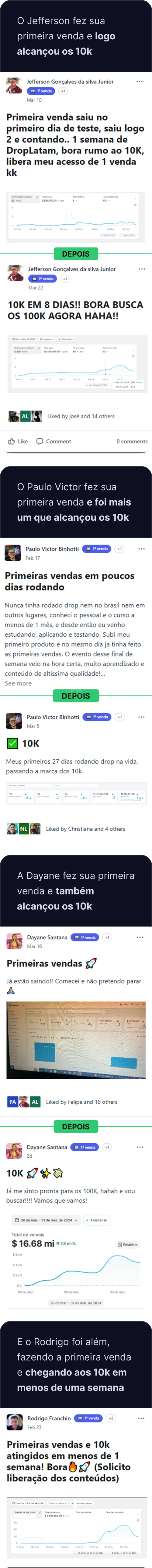 Não, vamos te ensinar tudo que você precisa para ter seus primeiros resultados e chegar aos 10k em vendas.